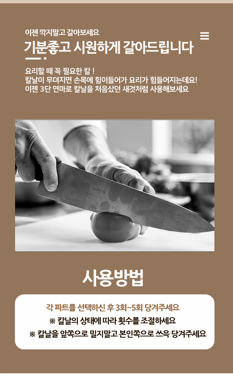 3in1 쓱싹 칼갈이 / 칼 가위 3단계로 깔끔하게 샤프너 칼 연마 수동칼갈이 / 숫돌 연 이미지/