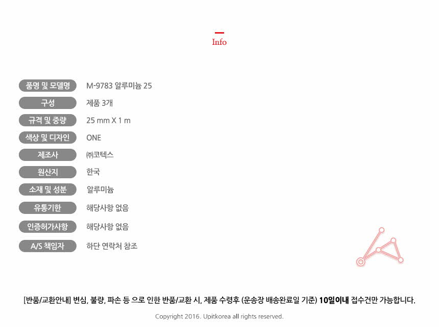 m 9783 알루미늄 25 데코 몰딩 3개입 25mmX1m 이미지/