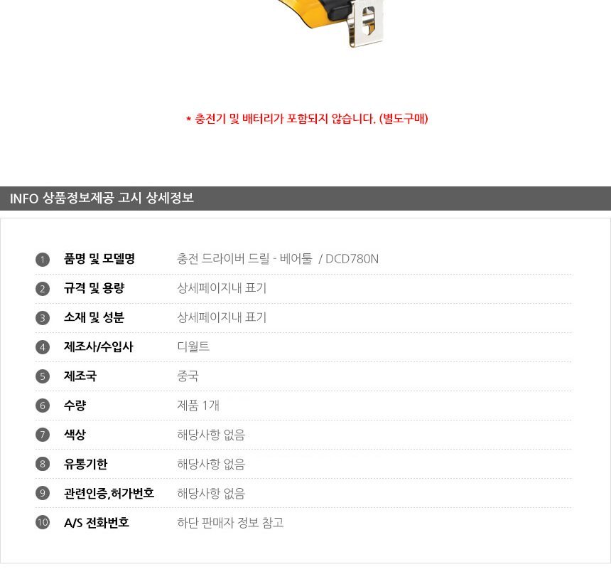 문구3 생활용품 디월트 충전 드라이버 드릴 베어툴 DCD780N 18V 이미지/