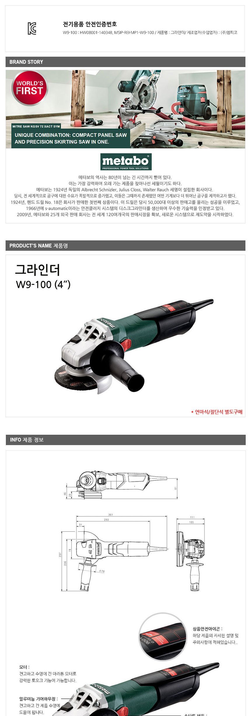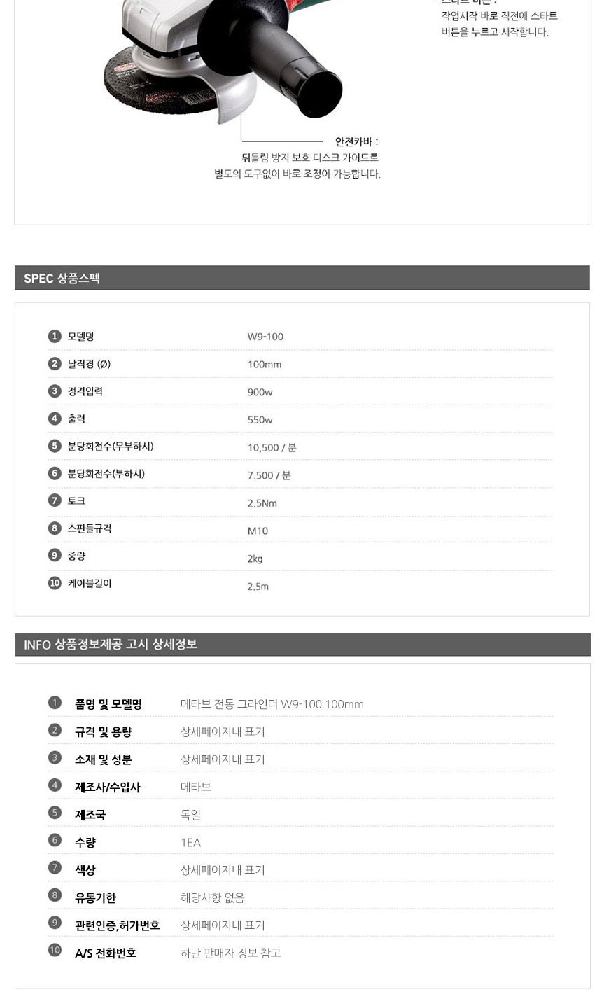 문구3 생활용품 메타보 전동 그라인더 W9-100 100mm