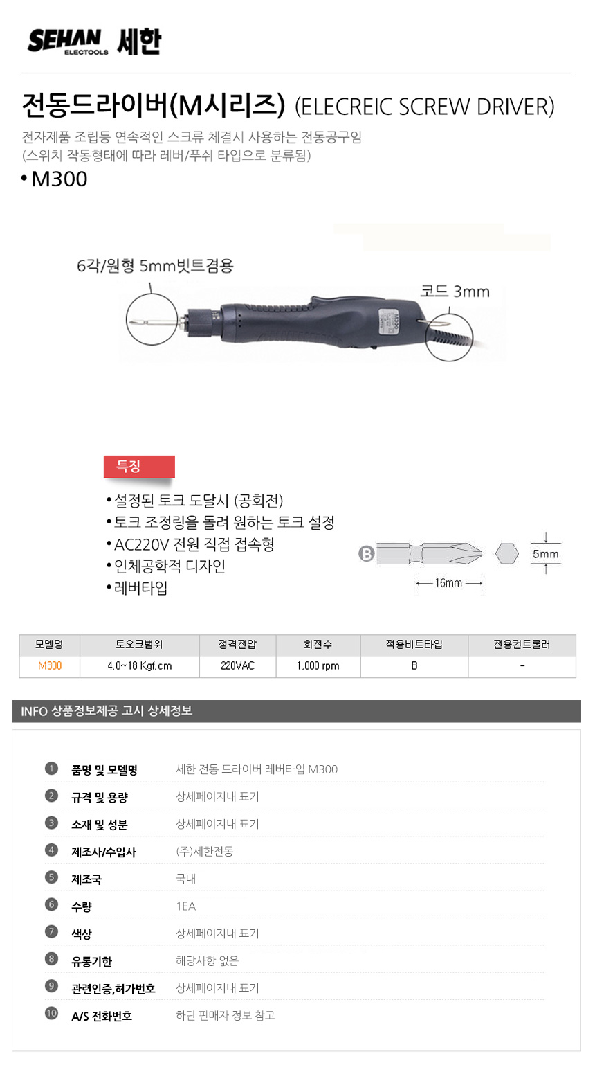문구3 생활용품 세한 전동 드라이버 레버타입 M300