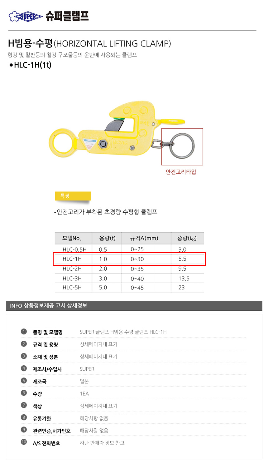 문구3 생활용품 SUPER 클램프 H빔용 수평클램프 HLC-1H 안전고리