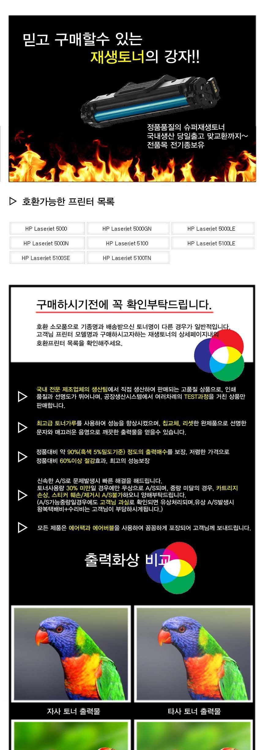 문구3 생활용품 Laserjet 5100LE 호환용 슈퍼재생토너 검정 이미지/