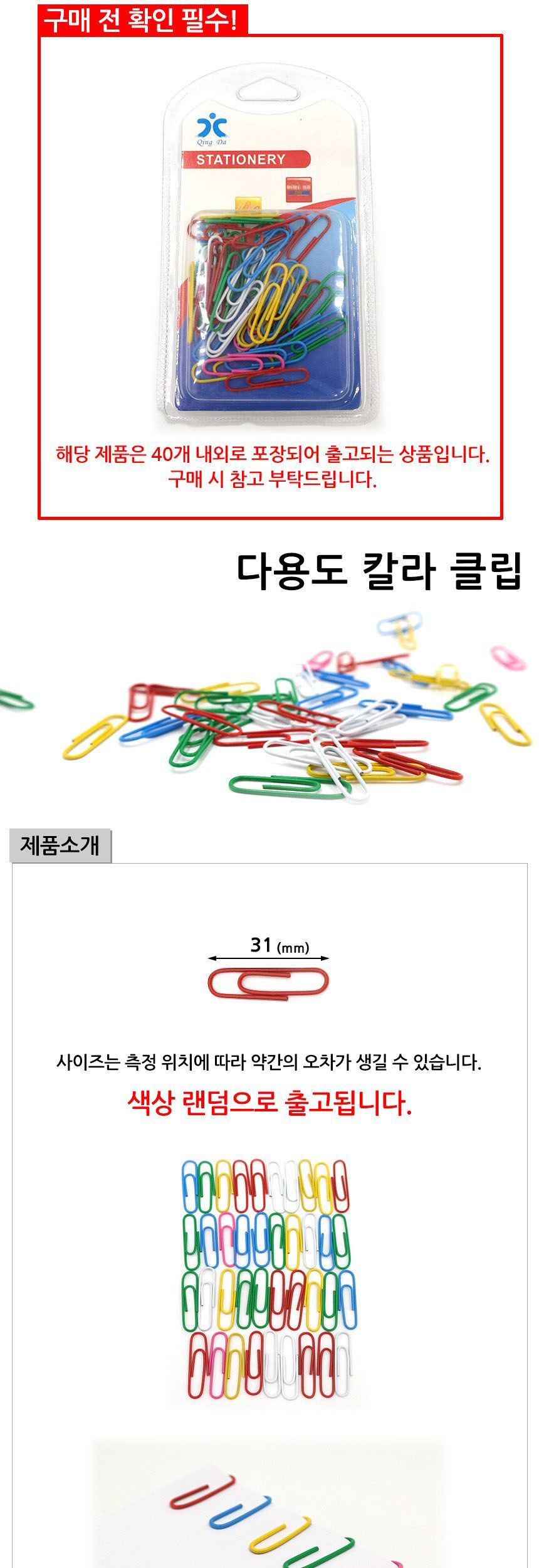 문구3 생활용품 다용도 칼라 클립 31mm 이미지/