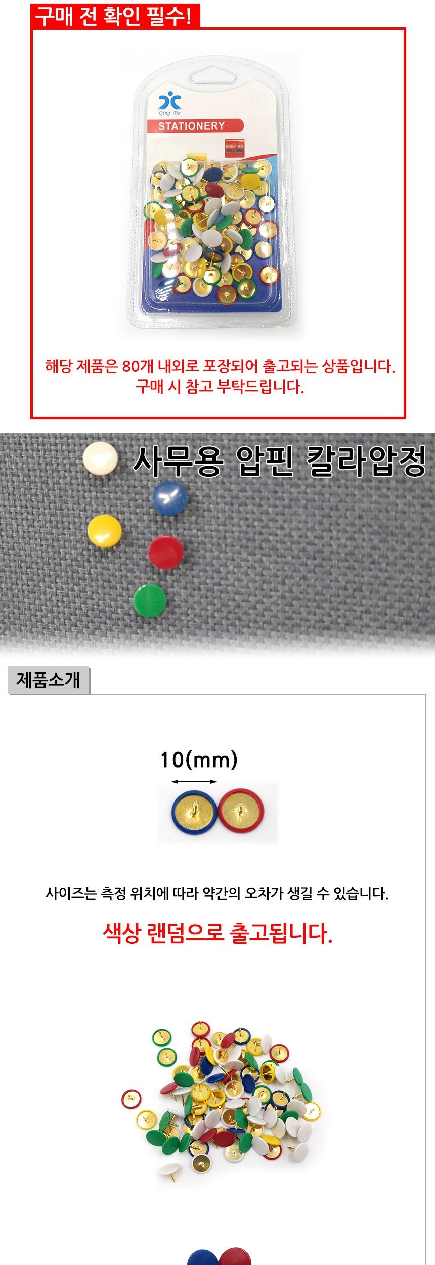 문구3 생활용품 사무용 압핀 칼라압정