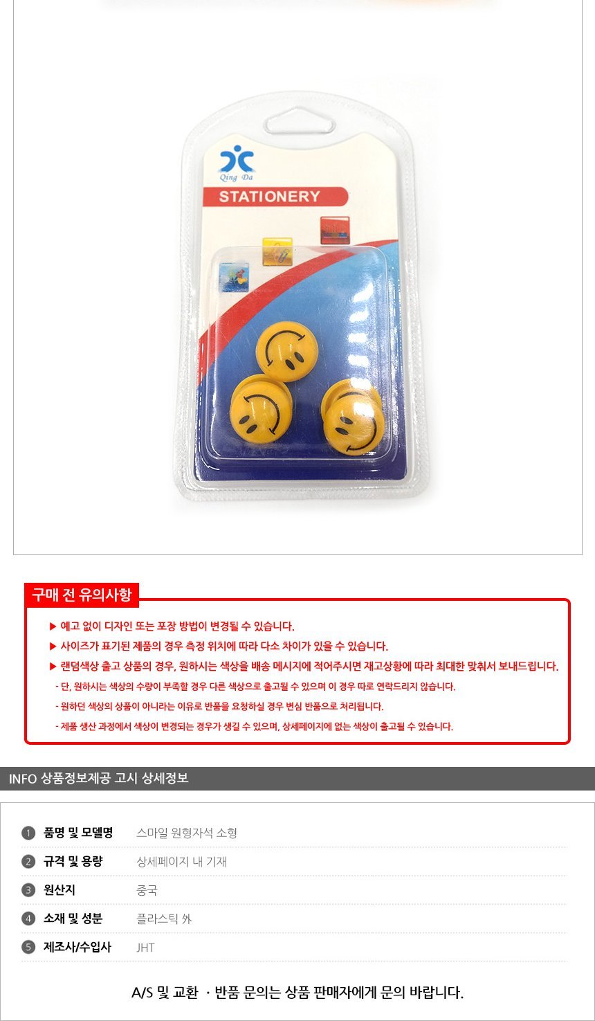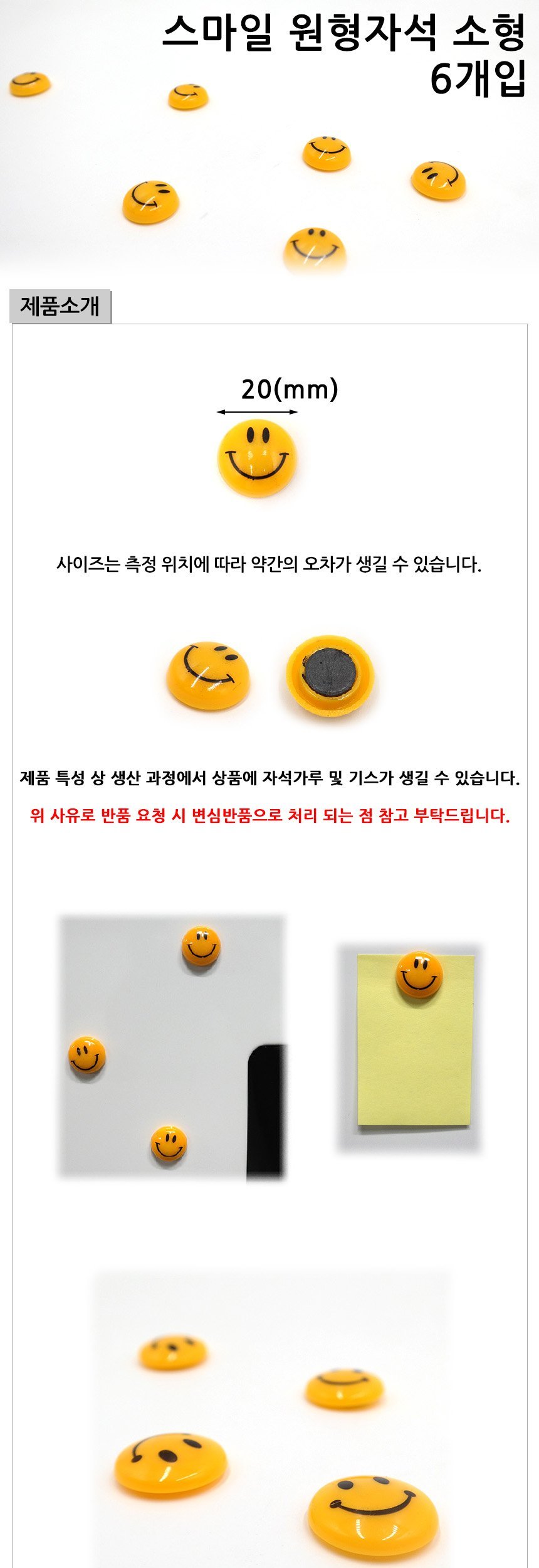 문구3 생활용품 스마일 원형자석 소형 6개입