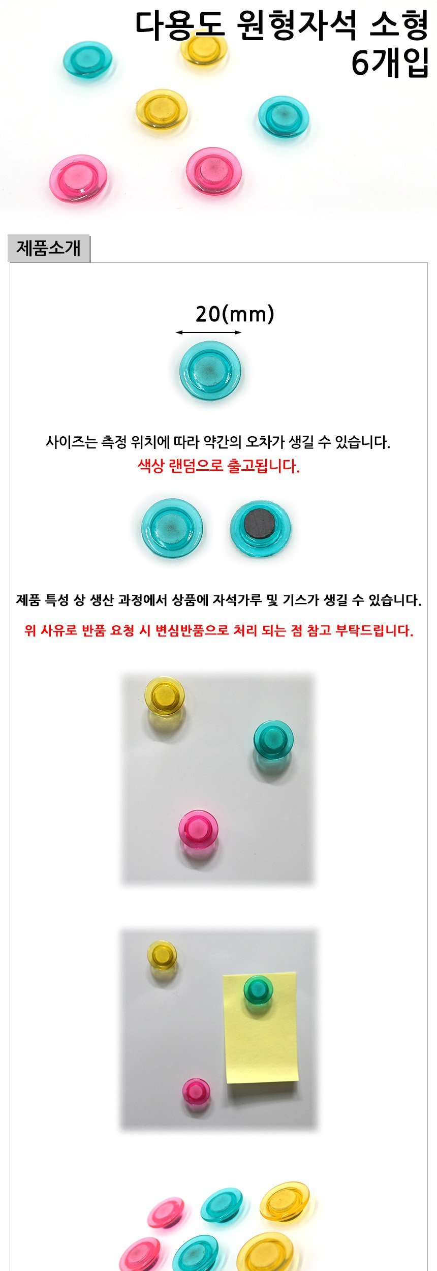 문구3 생활용품 다용도 원형자석 소형 6개입 이미지/