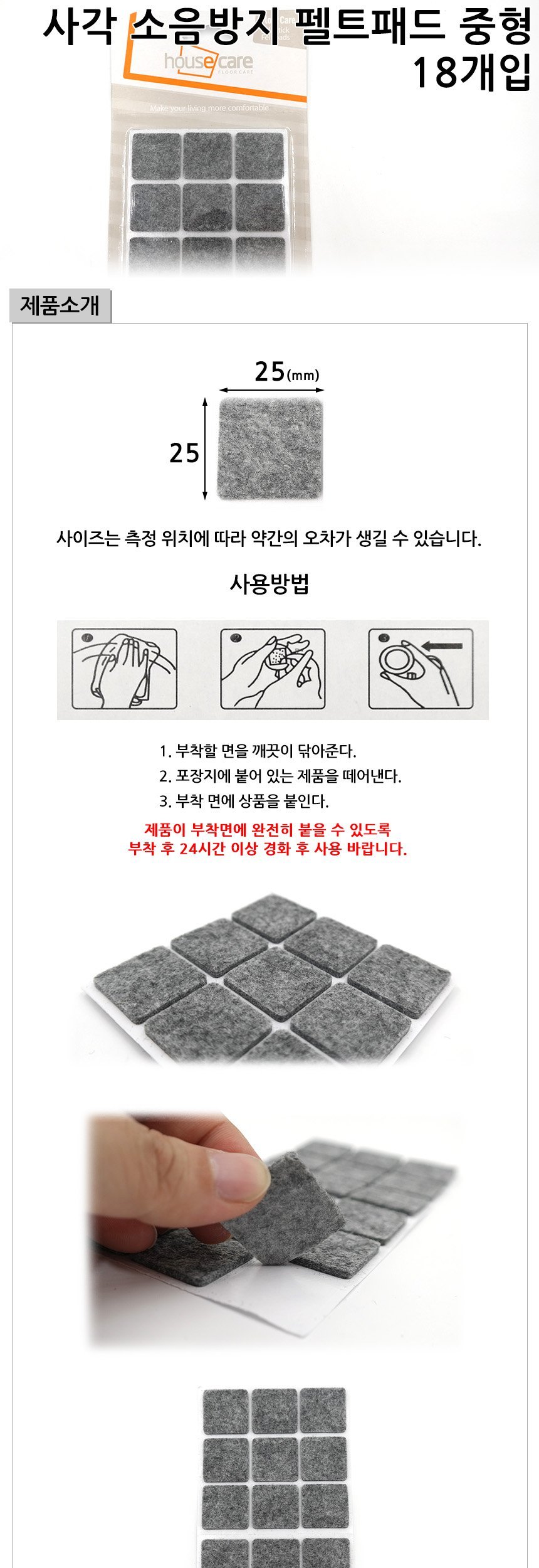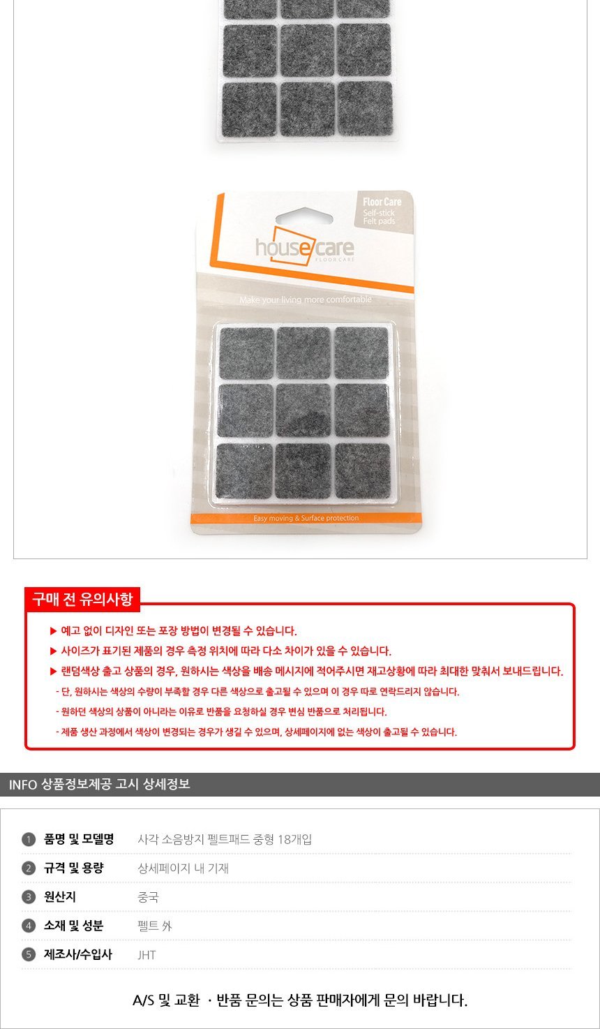 문구3 생활용품 사각 소음방지 펠트패드 중형 18개입