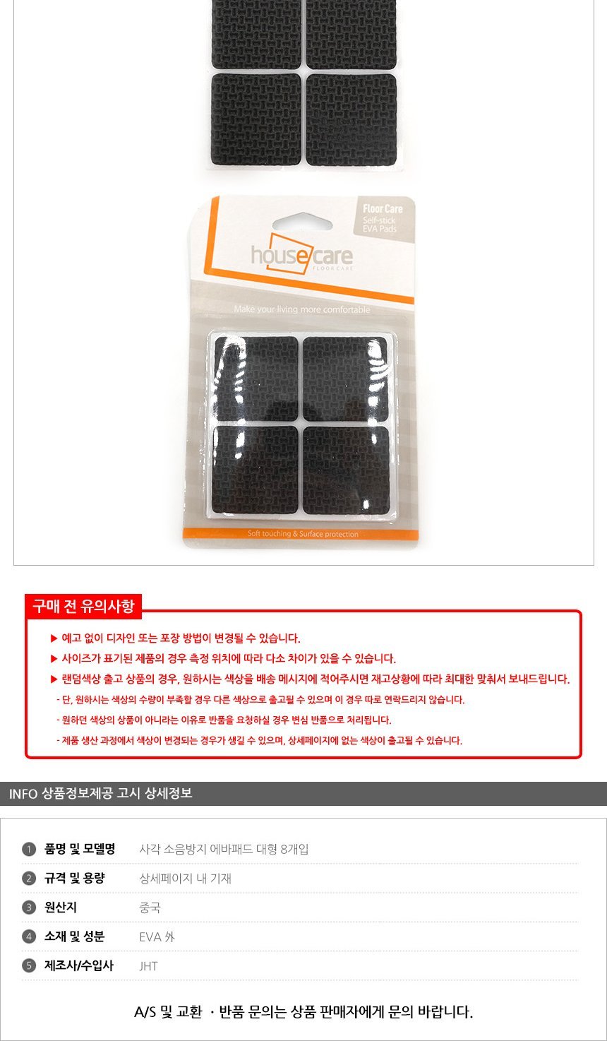 문구3 생활용품 사각 소음방지 에바패드 대형 8개입