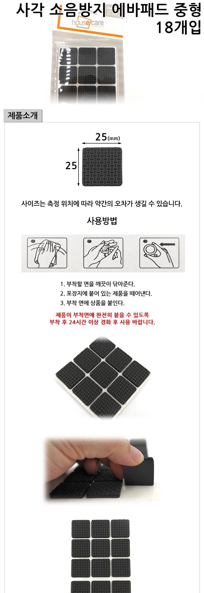 문구3 생활용품 사각 소음방지 에바패드 중형 18개입 이미지/