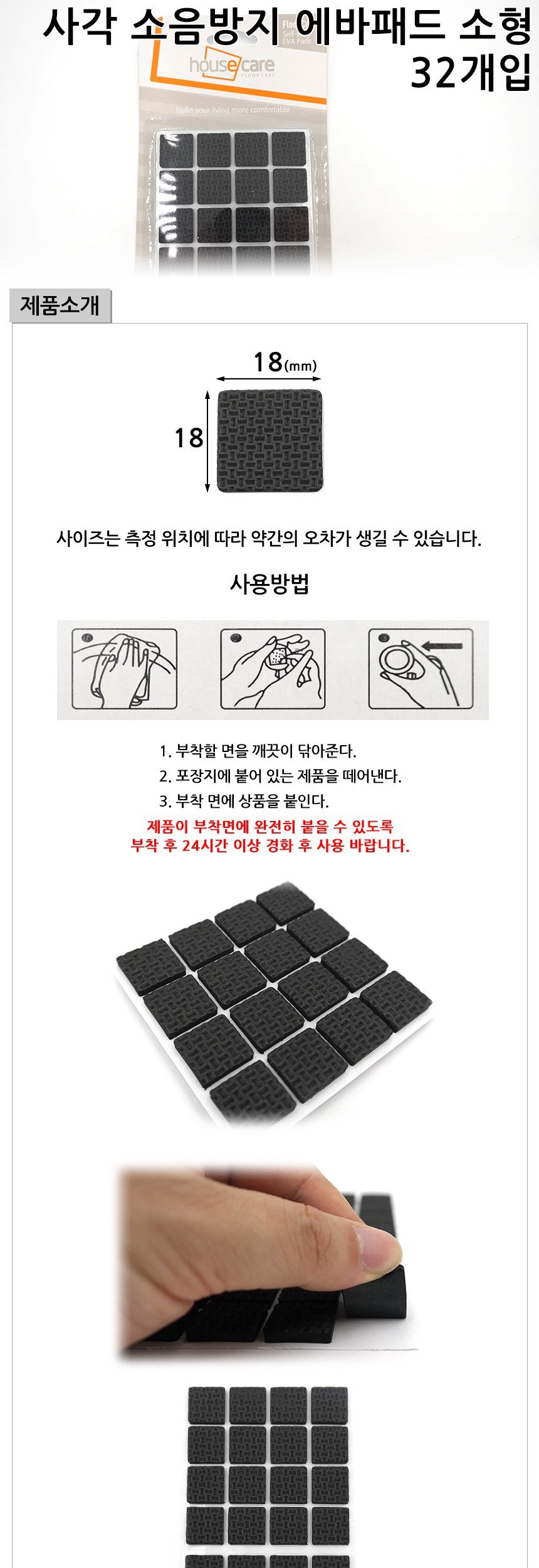 문구3 생활용품 사각 소음방지 에바패드 소형 32개입 이미지/