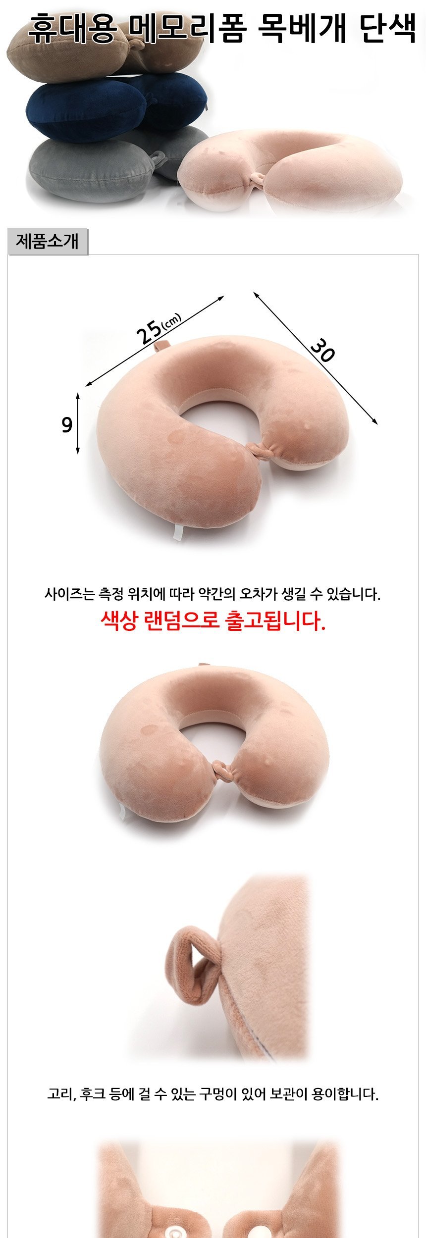 문구3 생활용품 휴대용 메모리폼 목베개 단색