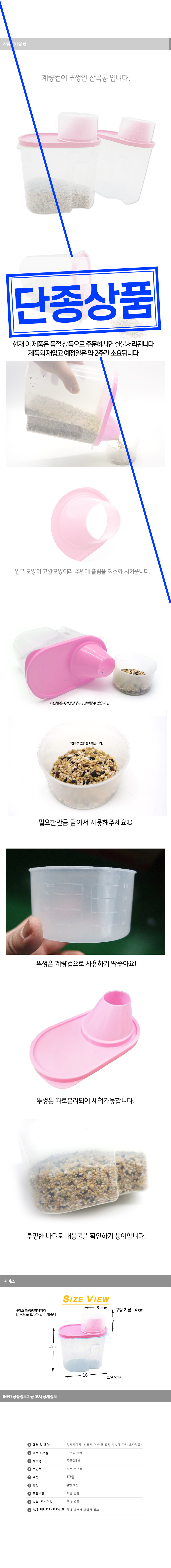 생활잡화 F 곡물보관통 핑크 이미지/