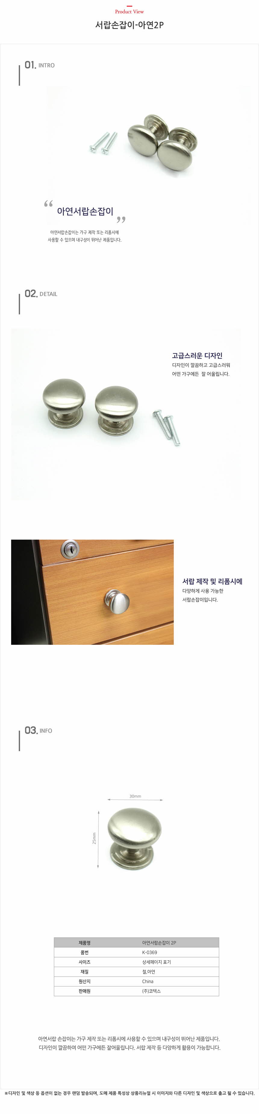 서랍손잡이-아연2P 이미지/
