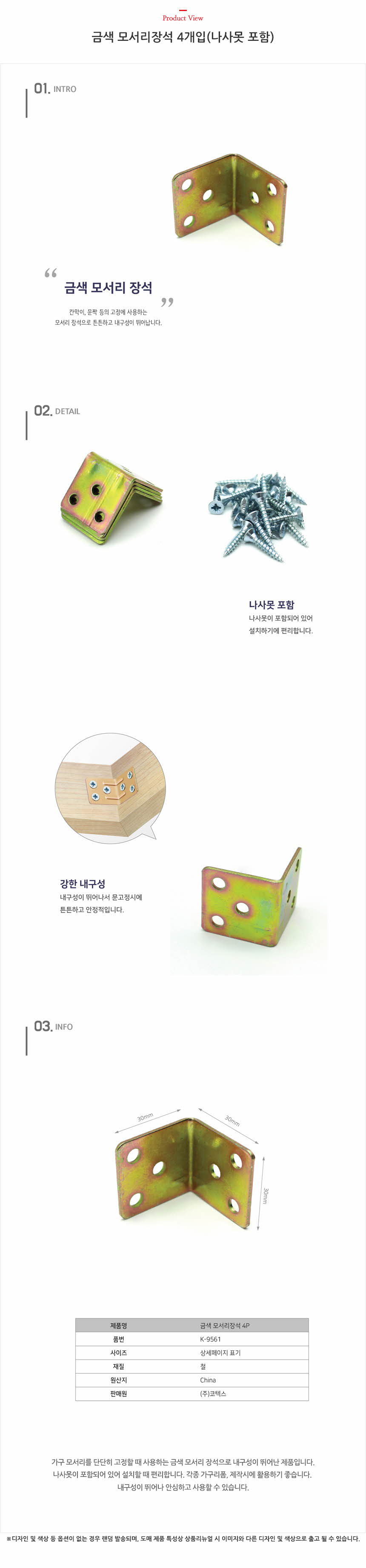 금색 모서리장석 4개입(나사못 포함) 이미지/