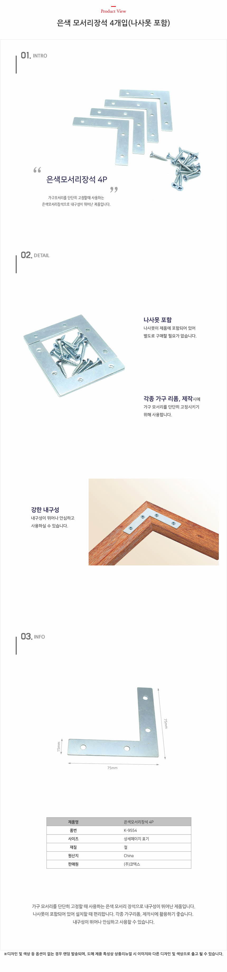 은색 모서리장석 4개입(나사못 포함)