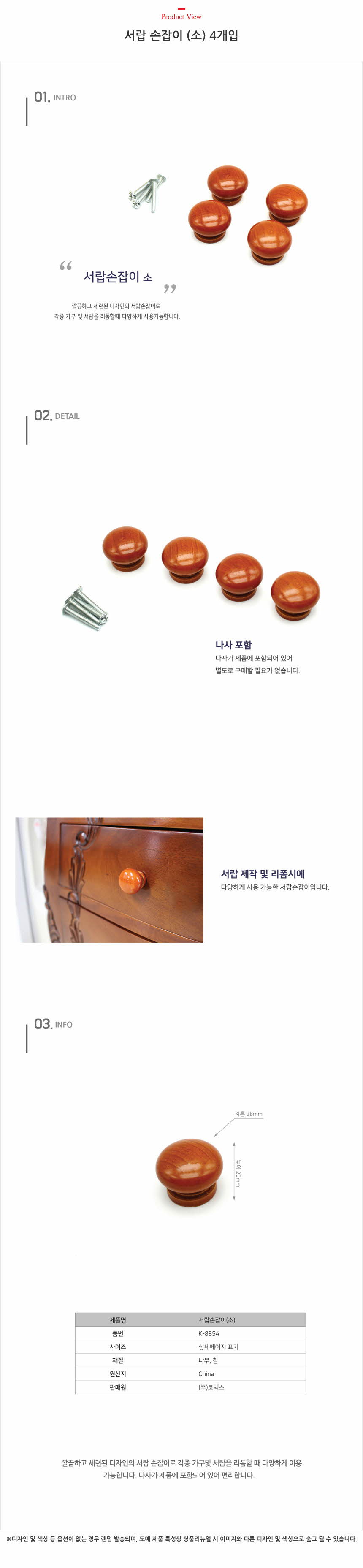 서랍 손잡이 (소) 4개입