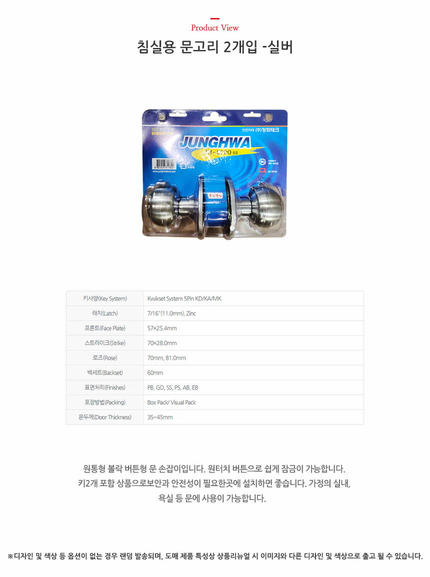 침실용 문고리 2개입 -실버 이미지/
