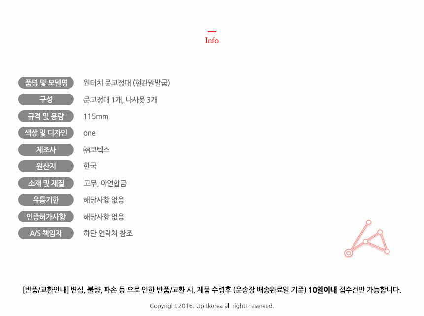 • 반품/환불조건: 도착후 1주일 이내 사용하지 않은 상태에서 가능합니다,초기제품 이상의 경우 동일한 제품으로 1:1 교환원칙, 사용후 제품이상은 A/S를 원칙으로 합니다,