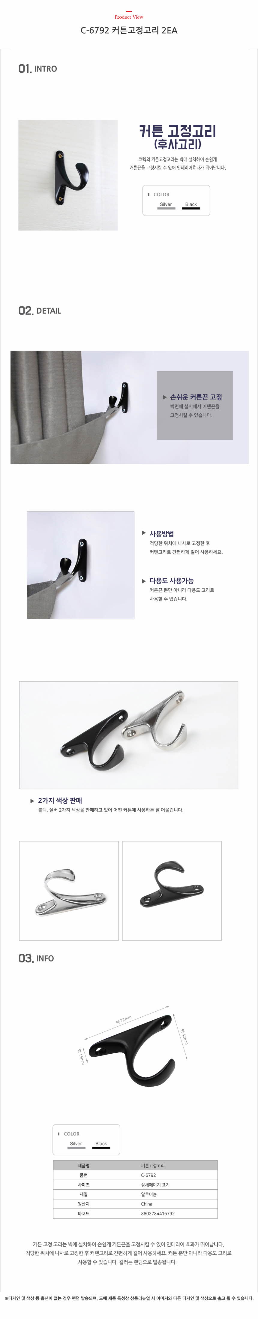 C-6792 커튼고정고리 2EA 이미지/
