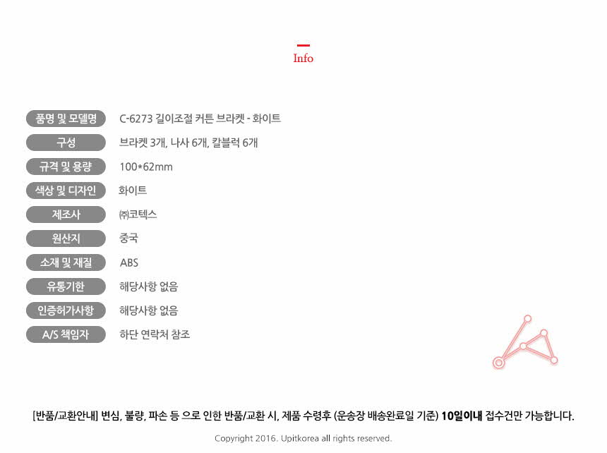 C-6273 길이조절 커튼 브라켓 - 화이트 이미지/
