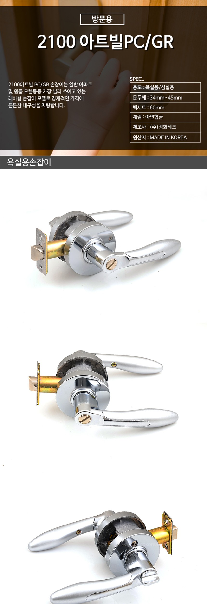 정화 2100 아트빌 PC GR 욕실용 손잡이 이미지/
