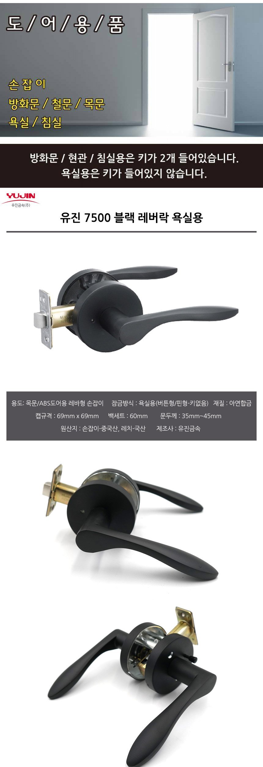 유진 7500 블랙 목문 방문손잡이 욕실용 도어용품 ABS도어 방손잡이 문손잡이 잠금장치