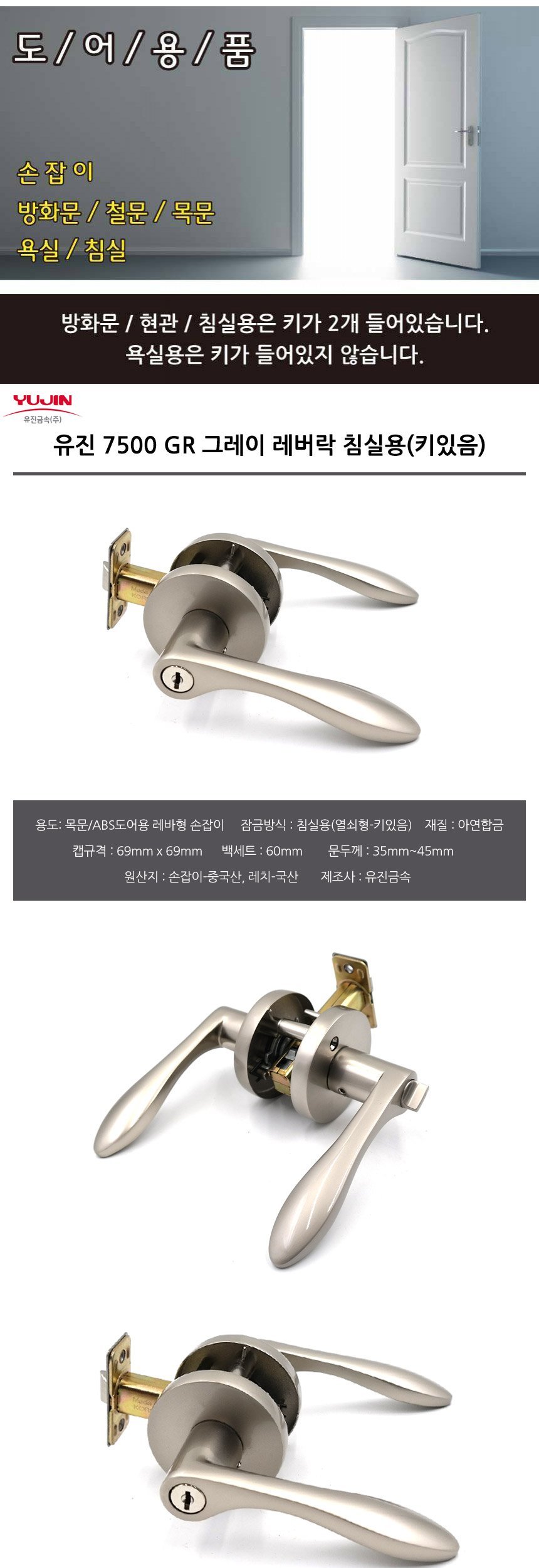 유진 7500 GR 그레이 목문 방문손잡이 침실용 도어용품 ABS도어 방손잡이 문손잡이 잠