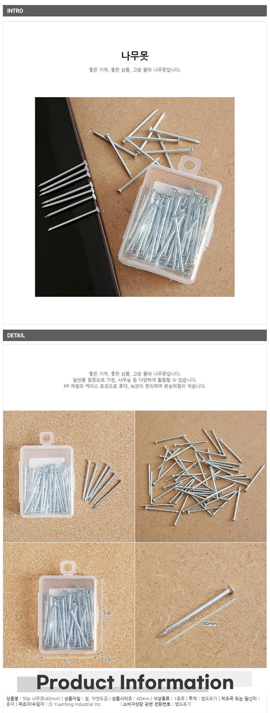 철 나무못 40mm 50개입 고정공구 공예용 목공공구