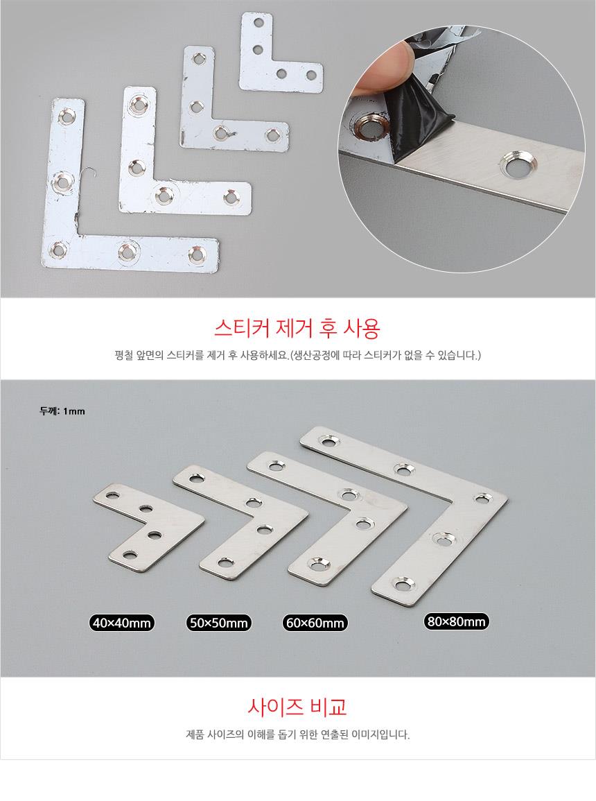 10P 다목적 ㄱ형 평철 50x50cm 가구고정 가구부속 이미지/