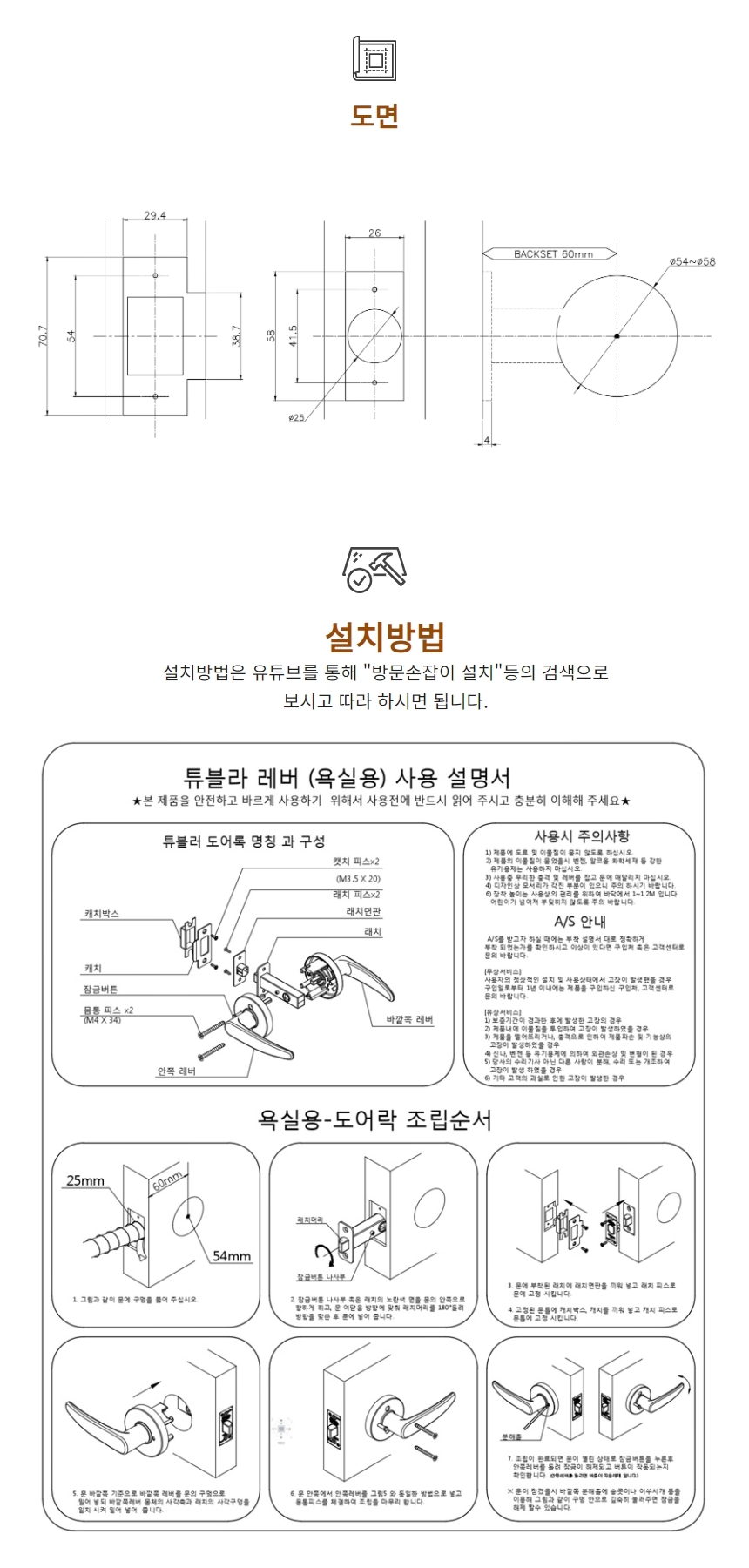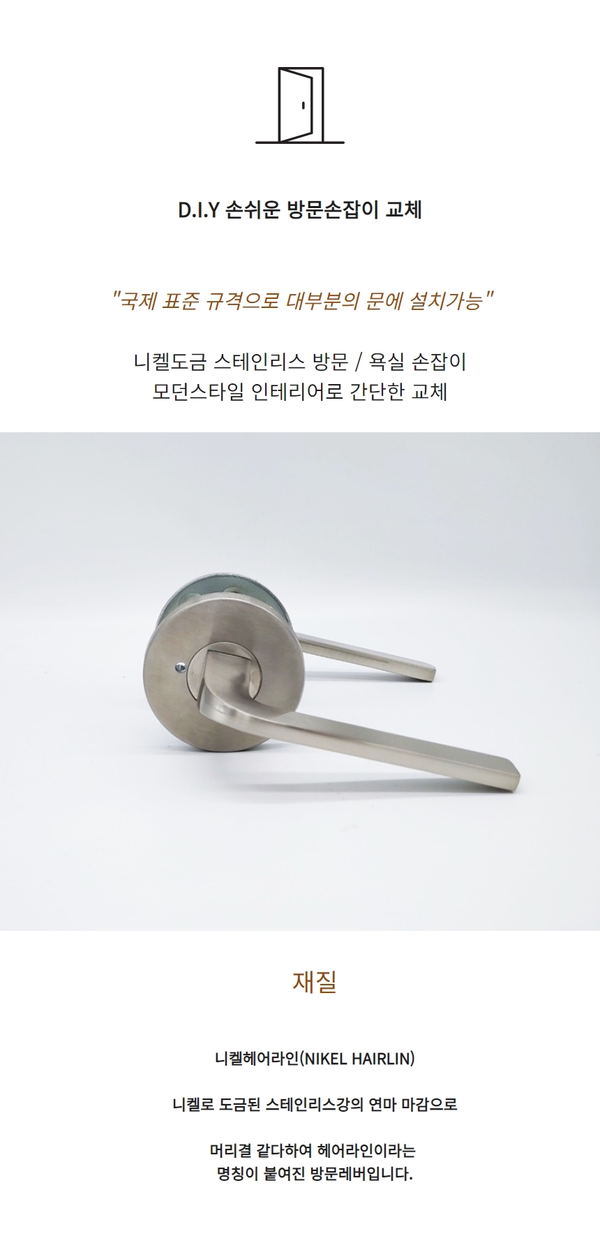 방문 욕실 손잡이 레버 간편 문고리 교체 니켈무광 DIY 도어용품