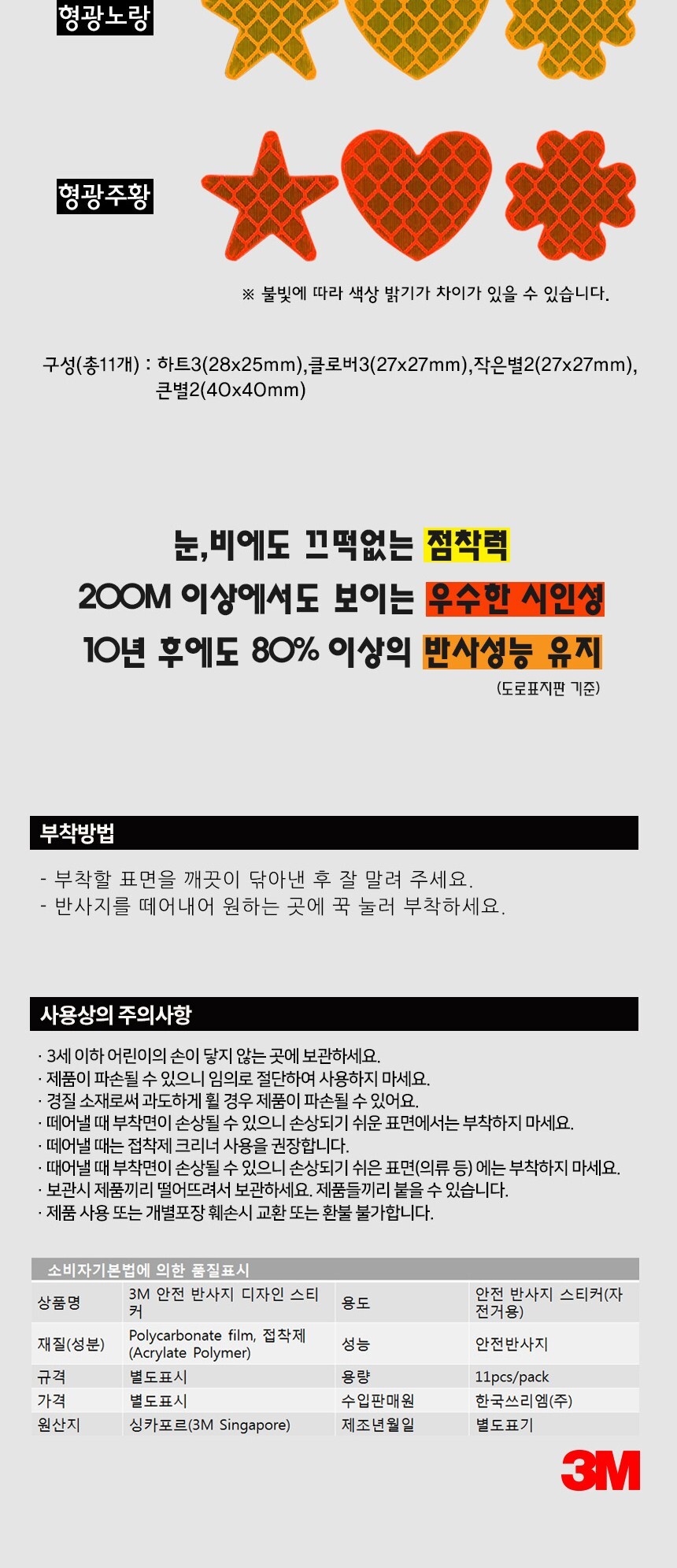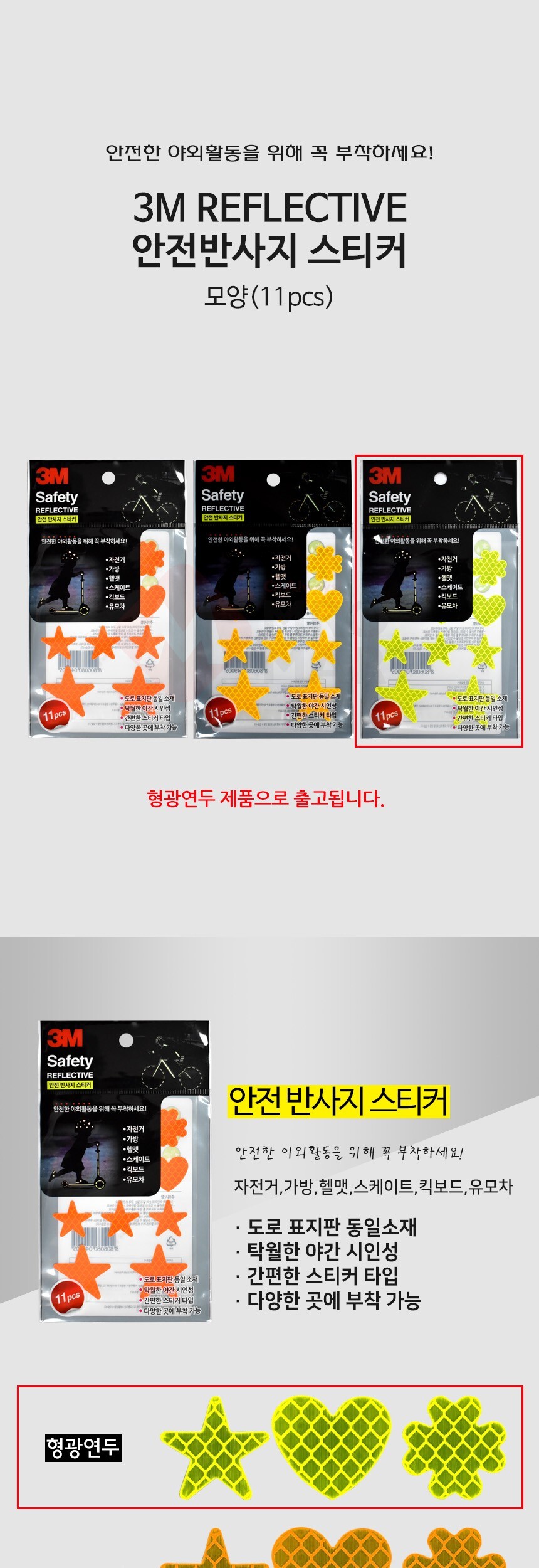3M 안전 반사지 스티커 모양 형광연두 반사테이프 안전테이프 야간작업 안전표시 레져장비