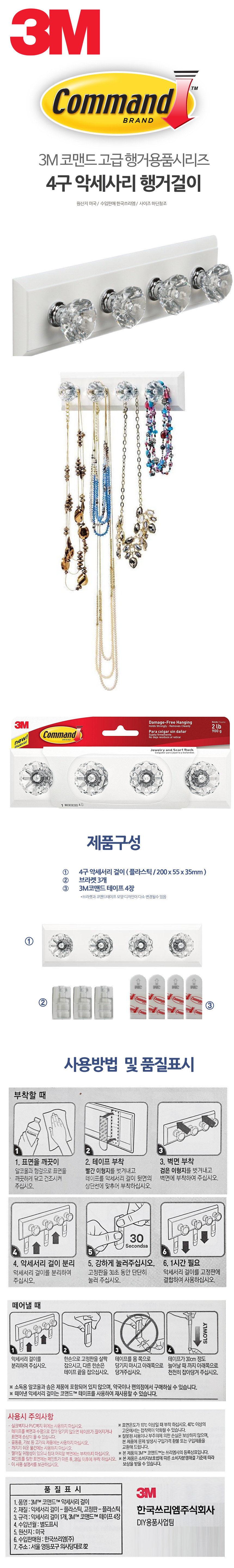 3M 가방 모자 걸이 벽면 행거 고리 4구 벽걸이 벽수납 이미지/