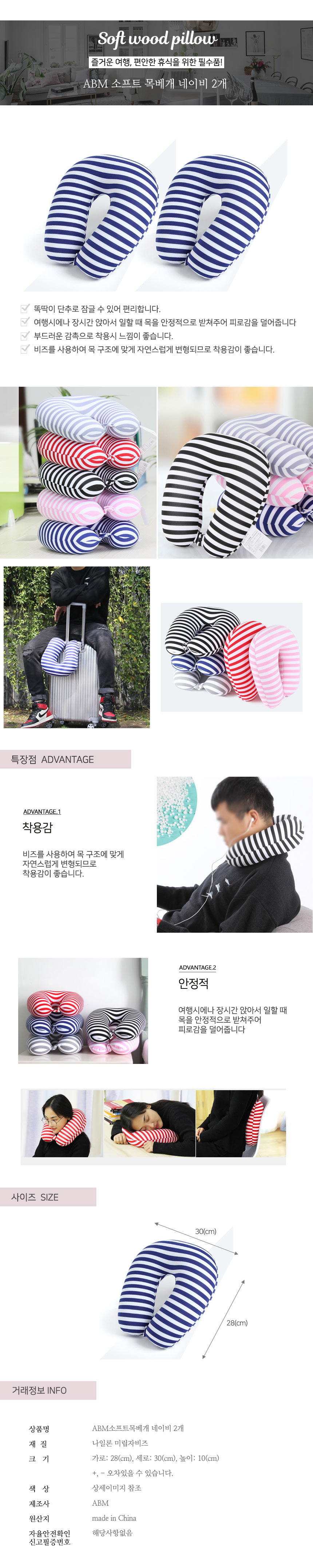 목베개쿠션 여행용베개소프트 목베개 네이비 2개 이미지/