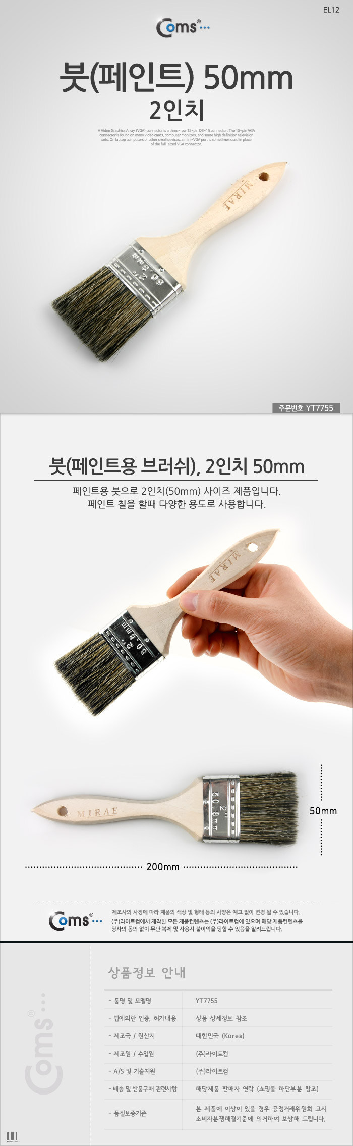 Coms 페인트 붓 2형 50mm 이미지/
