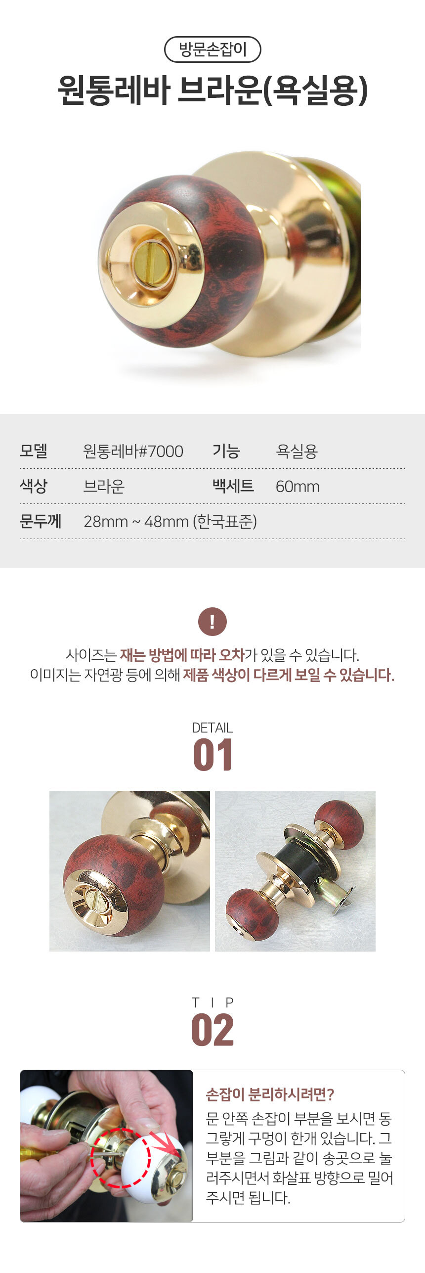 원통레바 (브라운.욕실용.키없음) 방문손잡이 인테리 이미지/