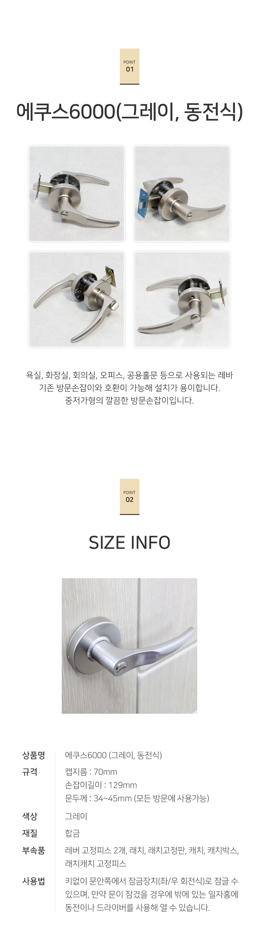 에쿠스6000 (그레이 동전식) 방문손잡이 인테리어 손 이미지/