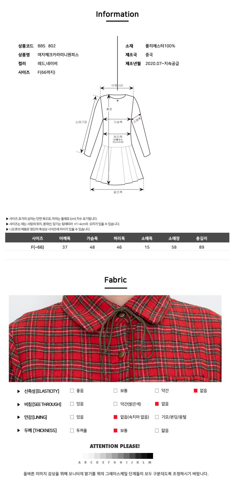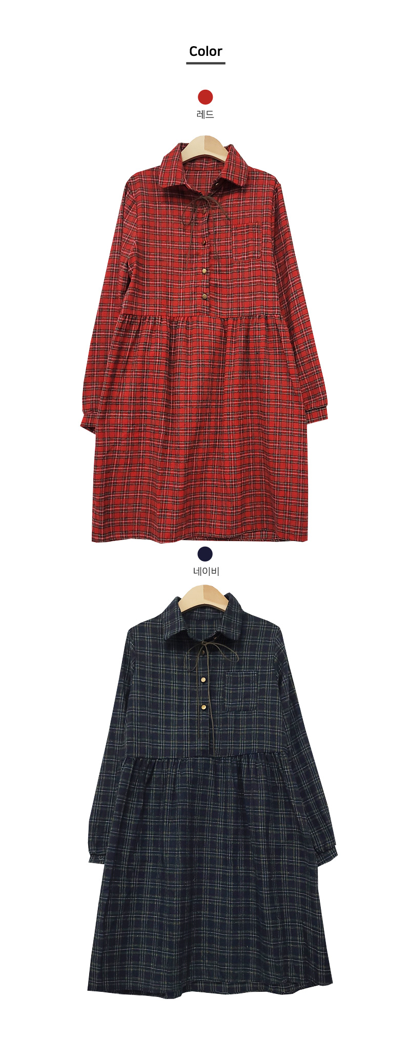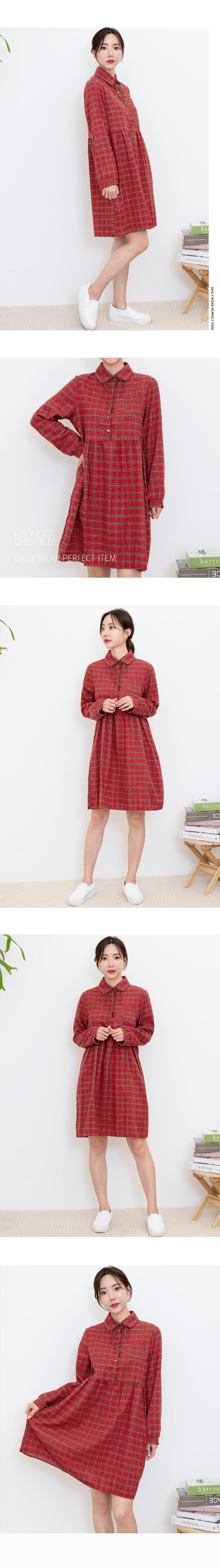 여자 체크 카라 미니 원피스 J631451 이미지/