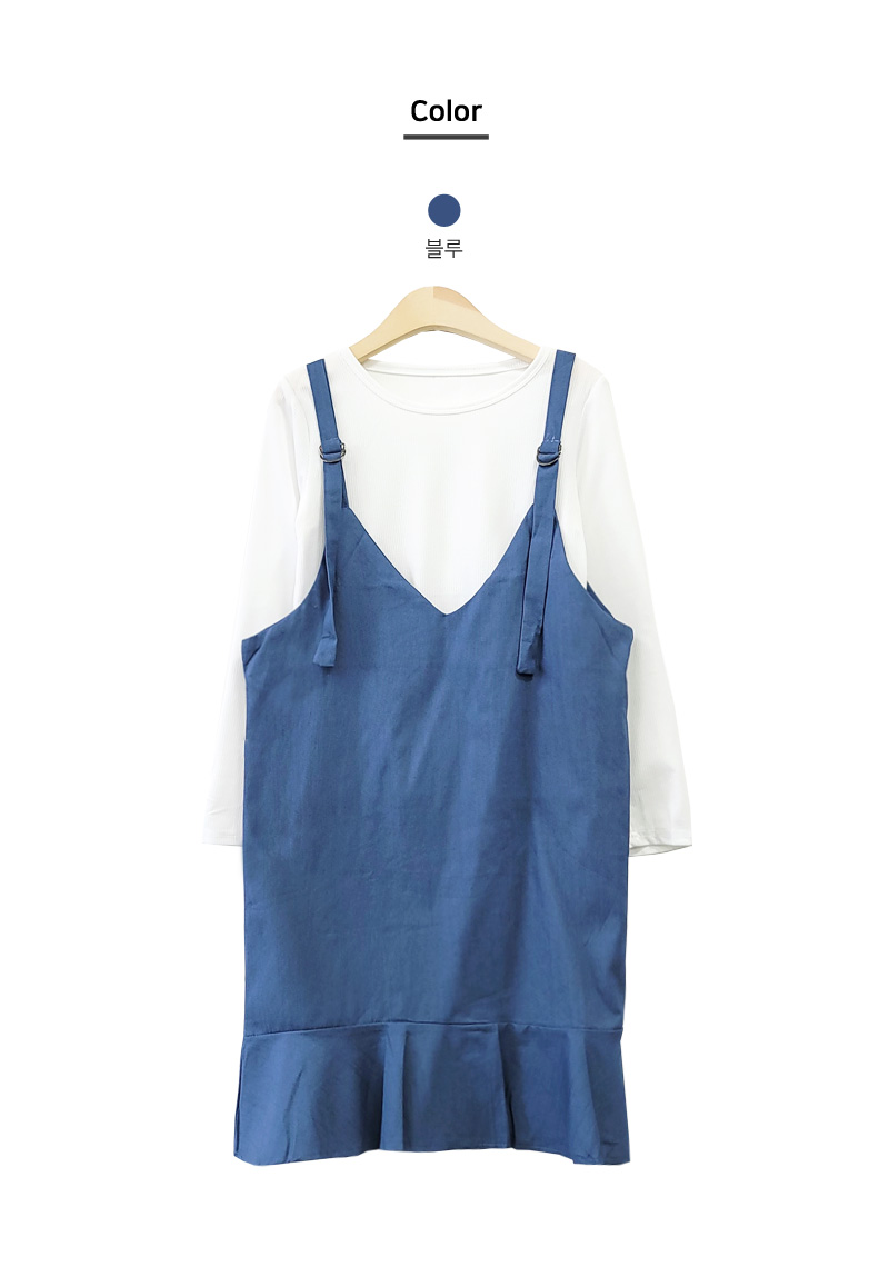 여자 멜빵프릴 긴팔 원피스 티셔츠 포함 J629661