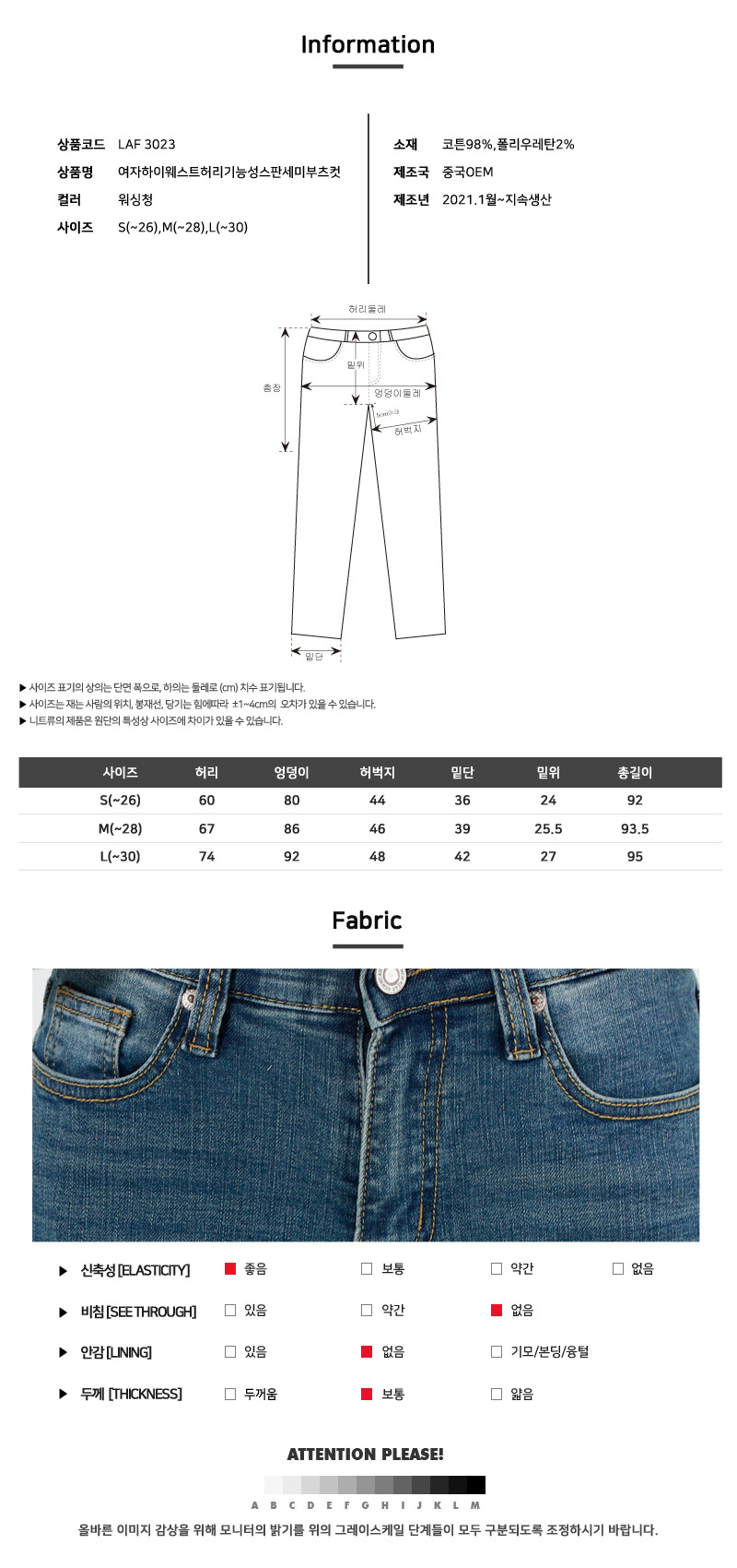 여자 하이웨스트 허리 기능성 스판 세미 부츠컷 J628924