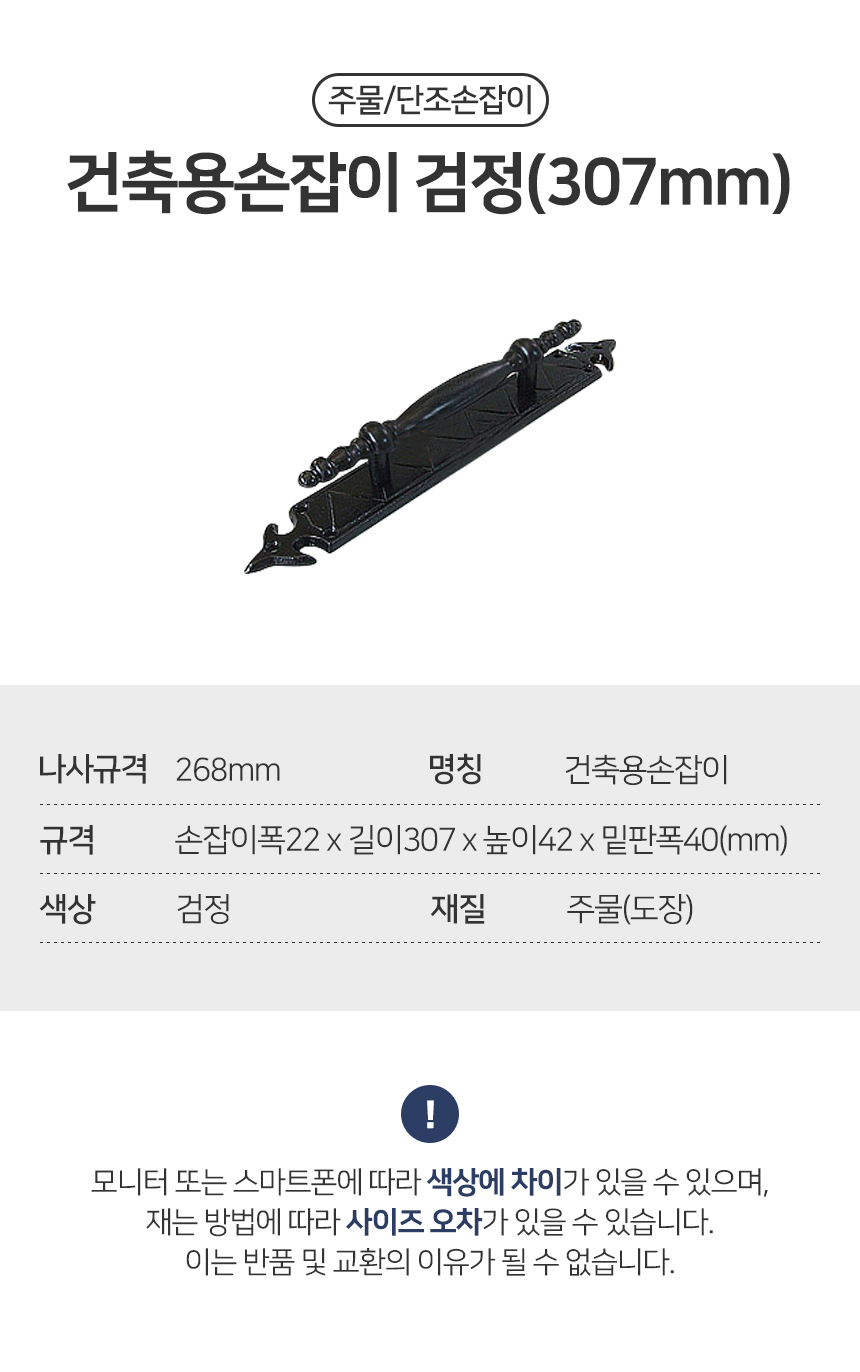 건축용손잡이 검정 (307mm) 방문손잡이 인테리어 손