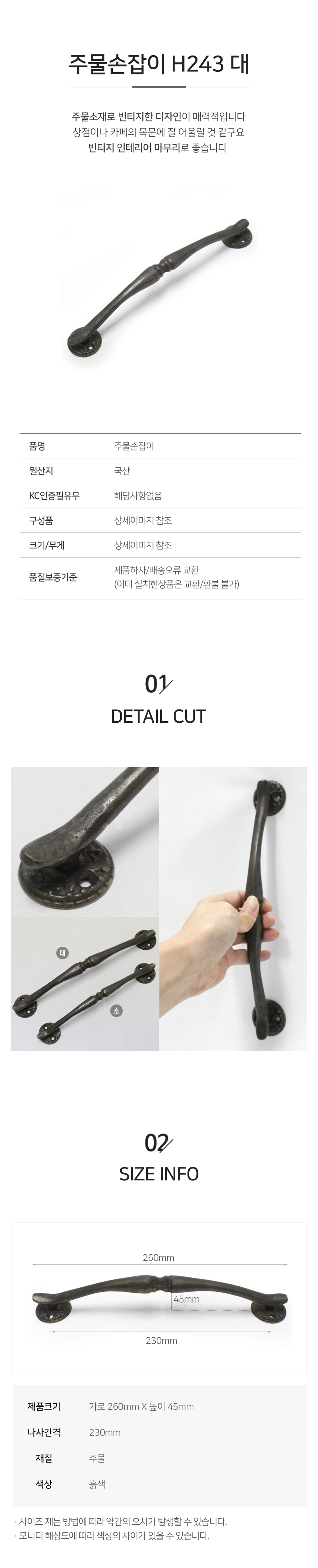 주물손잡이,H243,대,방문손잡이,인테리어,손잡이,리폼,DIY,문손잡이,철물
