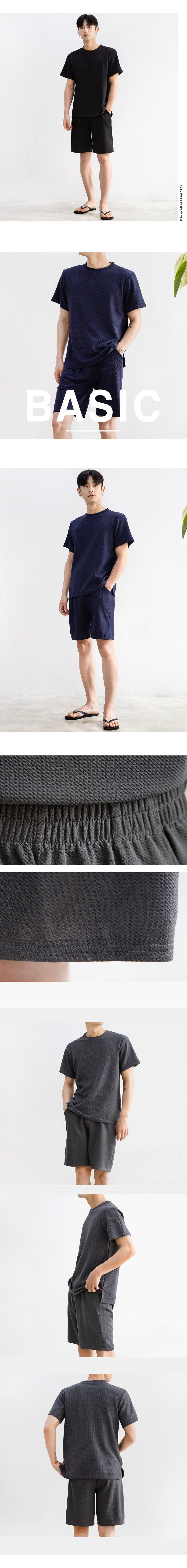 남자 엠보싱 무지 5부 반바지 세트 J624798