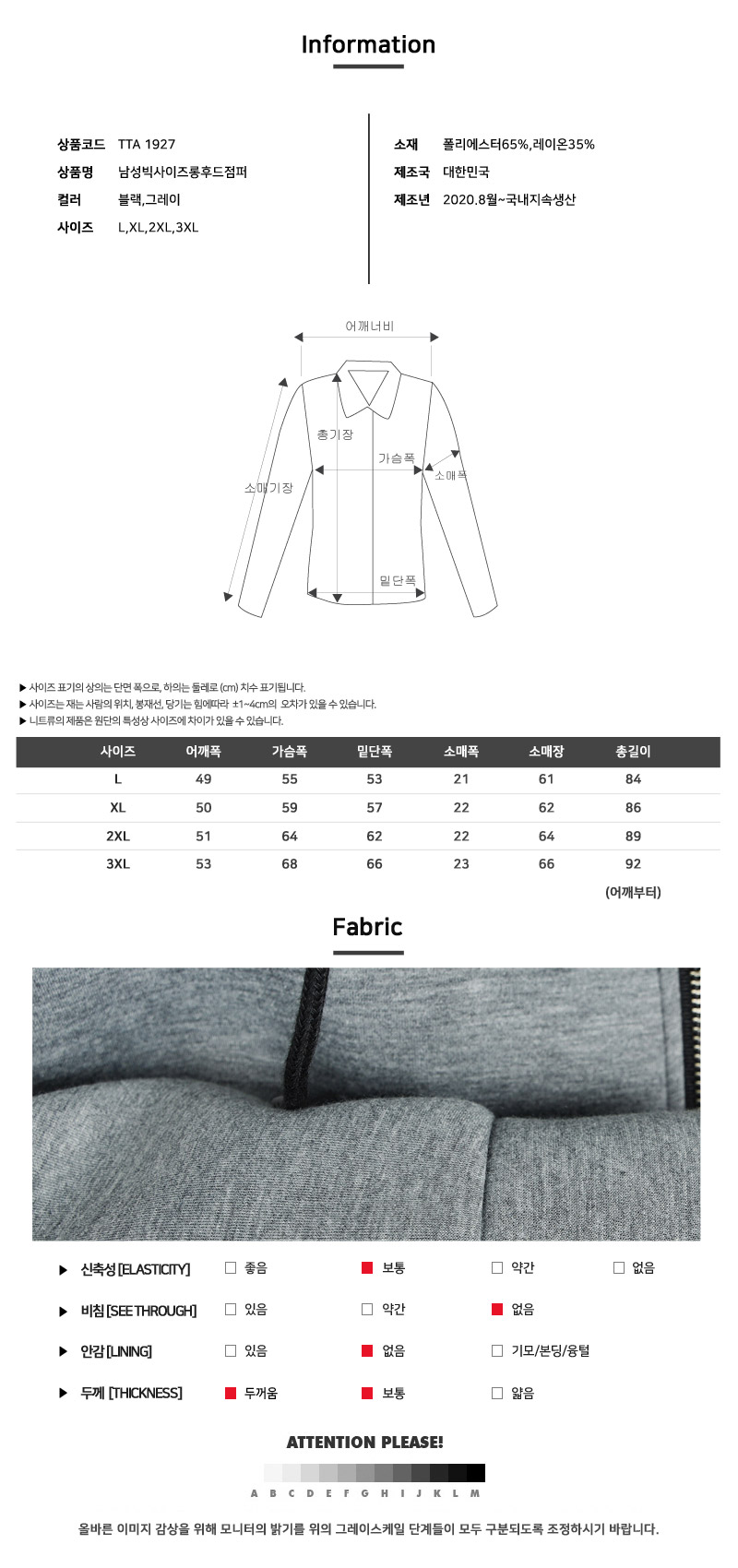 남성 빅사이즈 롱후드 점퍼 J626239 이미지/