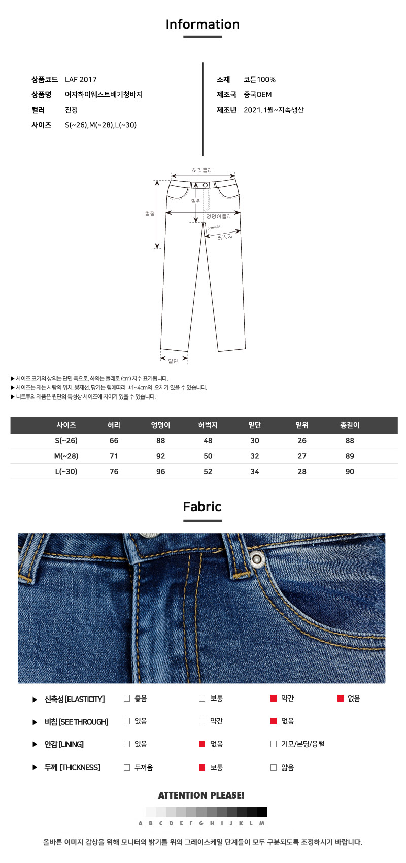 여자 하이웨스트 배기 청바지 J628929