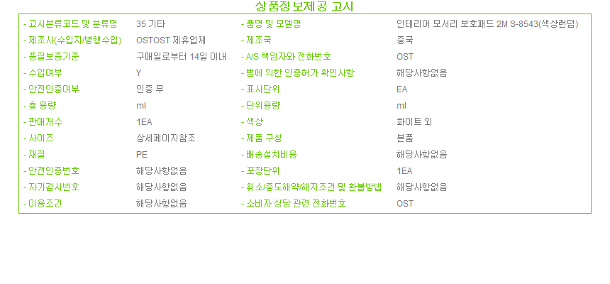 인테리어 모서리 보호패드 2M S-8543 (색상랜덤)