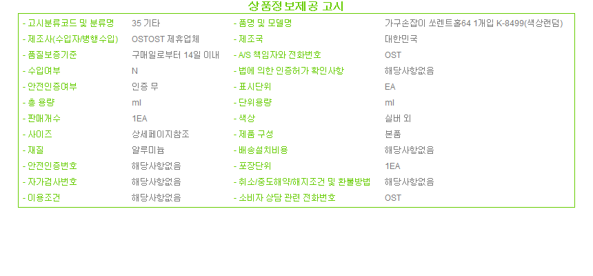 A/S책임자와 전화번호 또는 소비자 상담 관련 전화번호 상품상세설명에 표기