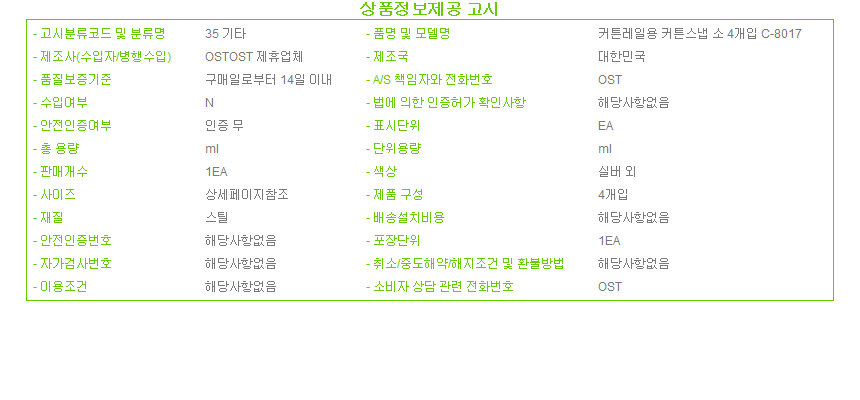 8. 소비자피해보상의 처리, 재화 등에 대한 불만 처리 및 소비자와 사업자 사이의 분쟁처리에 관한 사항 : 상세정보 별도표기