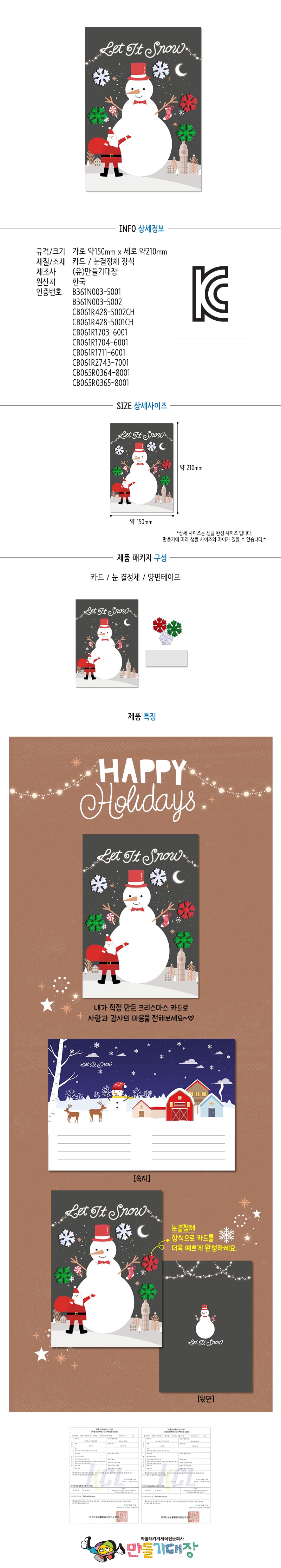 (만들기)크리스마스 눈사람 부직포 눈꽃 카드 만들기 이미지/
