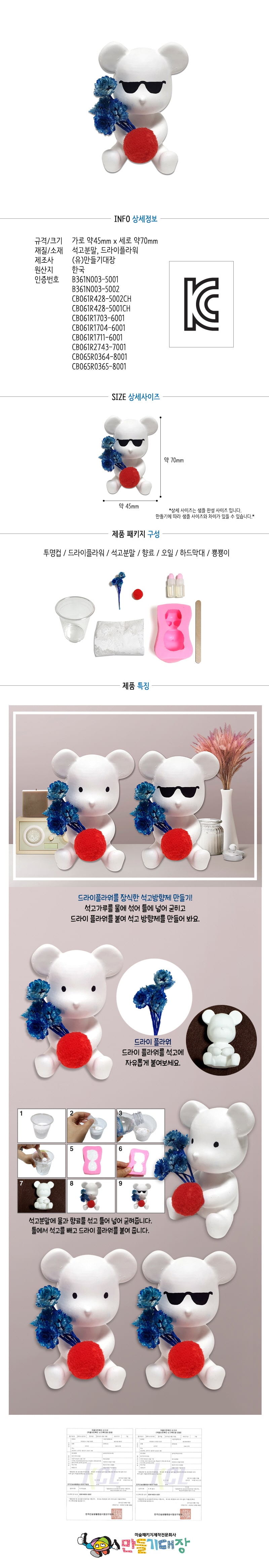 (만들기대장) 곰돌이 드라이플라워 석고 방향제 (몰드포함)